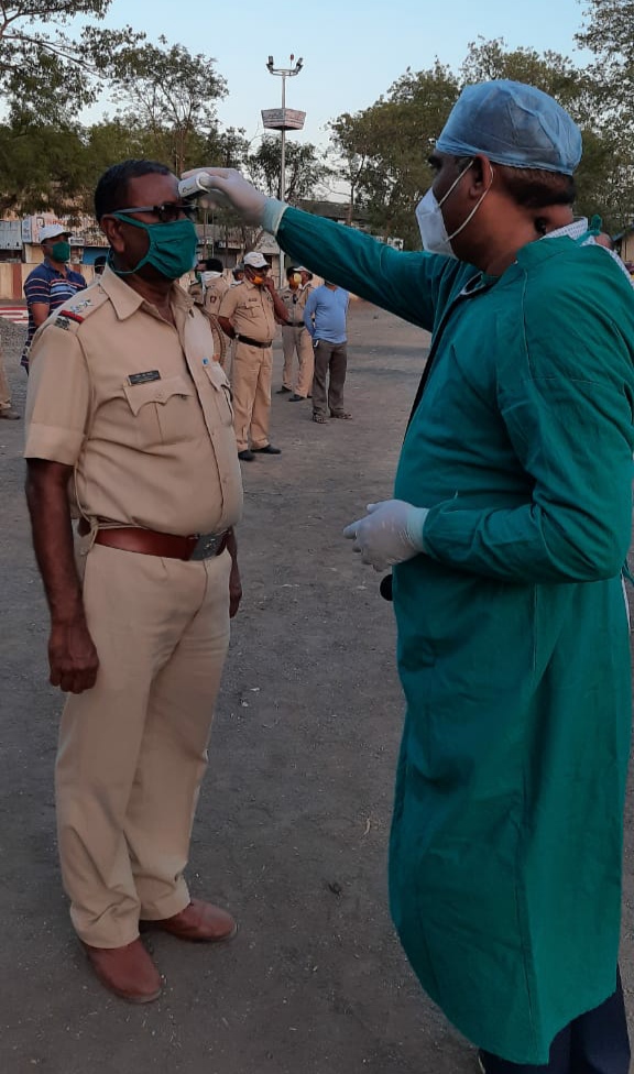 अमळनेर पो. स्टे. अंतर्गत आज दिनांक ४ मे रोजी सायंकाळी पोलीस ग्राउंडवर पोलीस कर्मचाऱ्यांची वैद्यकीय तपासणी करण्यात आली. साई सेवा हॉस्पिटलचे डॉ. प्रशांत शिंदे यांचे सहयोगाने ५ अधिकारी व ६५ पोलीस कर्मचारी यांची मोफत वैद्यकीय तपासणी करण्यात आली आहे. या वैद्यकीय तपासणीचे नियोजन पोलीस स्टेशनचे पोलीस निरीक्षक अंबादास मोरे व गोपनीय शाखेचे शरद पाटील यांनी केले. मोफत वैद्यकीय तपासणी केल्याबद्दल डॉक्टरांचे विशेष आभार मानले. त्यांनी यापुढेही असेच सहकार्य करावे अशी अपेक्षा व्यक्त केली. मेडिकल शिबिरासाठी नियोजनात सपोनि एकनाथ ढोबळे, सपोनि प्रकाश सदगीर, पीएसआय राजेंद्र माळी, पीएसआय गणेश सूर्यवंशी, दिपक माळी, रवींद्र पाटील, हितेश चिंचोरे, योगेश महाजन हजेरी मास्टर संजय पाटील आदिंनी मेहनत घेतली.