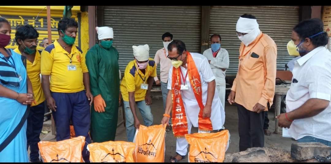 अमळनेर : कोरोनाचा संसर्ग रोखण्यासाठी लॉकडाऊन चा चौथा टप्पा घोषित झाला. यामुळे गोरगरीब जनता हलाखीच्या परिस्थितीत जीवन व्यतित करीत आहे. अशा परिस्थितीत अमळनेर शहर व ग्रामीण भागात अमळनेर शिवसेने तर्फे पालकमंत्री नामदार गुलाबरावजी पाटील व पाळधी येथील साईबाबा संस्थान यांच्या सहकार्याने ५०० कुटुंबांना ‘शिवसेनेची शिदोरी’ दिली आहे. या शिदोरीवर सुमारे पंधरा दिवस पुरेल एवढे गव्हाचे पीठ, तांदूळ, तेल, साखर, चटणी, मसाला, मीठ, चहा, हळद, ११ किलो वजनाच्या जीवनावश्यक वस्तू आहेत. अमळनेर शिवसेना पदाधिकाऱ्यांनी घरोघरी ही शिदोरी पोहच केली.