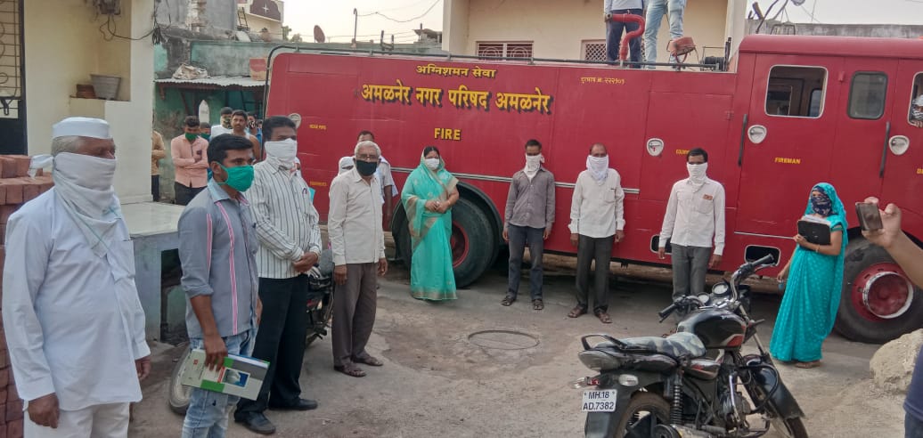 अमळनेेर : शहरात कोरोना विषाणूचा संसर्ग वाढत असतांनाच ग्रामीण भागातही शिरकाव होण्यास सुरुवात झाली आहे. तालुक्यातील शिरुड येथे काल कोरोना पाॅझिटीव्ह रुग्ण आढळून आल्याने अमळनेर नगर परिषदेच्या माध्यमातून मा.आ.साहेबराव पाटील व नगराध्यक्षा सौ. पुष्पलता ताई पाटील यांच्या सहकार्याने जळगाव जिल्हा बँक संचालिका सौ. तिलोत्तमा पाटील यांनी संपूर्ण शिरुड गावात नगर परिषदेच्या कर्मचार्यांकडून सॅनीटायझर फवारणी करुन घेतली. यावेळी सौ. तिलोत्तमा पाटील, रविंद्र पाटील, शिरुड गावचे सरपंच सुपडु पाटील, ग्रामसेवक सूर्यवंशी भाऊसाहेब, वैद्यकीय अधिकारी डॉ. रनाळकर, वैद्यकीय सेविका, अंगणवाडी सेविका व ग्रामस्थांचे सहकार्य लाभले. कोरोना पाॅझिटीव्ह रुग्ण आढळून आल्यानंतर नगर परिषदेने तत्काळ सॅनीटायझर फवारणी केल्याने सर्व ग्रामस्थांनी आभार व्यक्त केले.