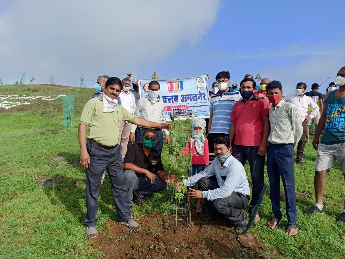 अमळनेर : येथील रोटरी क्लब च्या वतीने काल ता.१९ रोजी गंगाराम सखाराम हायस्कूलच्या वर्धापनदिनानिमित्त शाळेच्या प्रांगणात व ढेकू रोडवरील टेकडीवर वृक्षारोपण करण्यात आले. स्थानिक नवनाथ महाराज विकास मंचने ढेकू रोडवरील या टेकडीचे रुप पालटण्याचा निर्धार केला आहे. अमळनेर रोटरी क्लबने यासाठी ३० वृक्ष लागवड करून ३० संरक्षक जाळ्या व बागेश्री खत ची व्यवस्था करून दिली. टेकडी विकासासाठी काम करणाऱ्या मंचला प्रोत्साहन देत भावी काळात रोटरी क्लब तर्फे आणखी काही वृक्ष व संरक्षक जाळ्या उपलब्ध करुन देण्याचे आश्वासन दिले.
