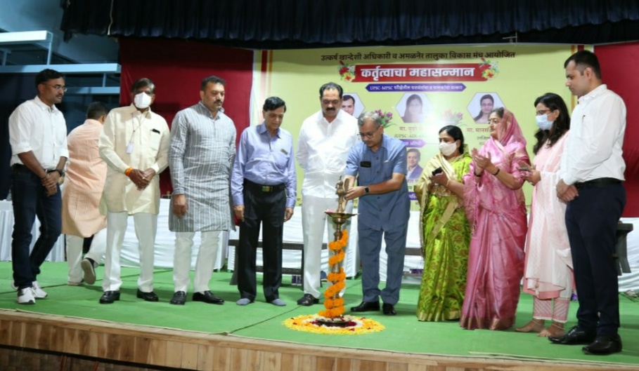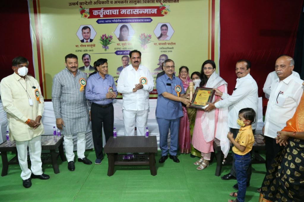 अमळनेर : यूपीएससी व एमपीएससी परीक्षेत खानदेशातील गौरव साळुंखे, मानसी पाटील यांनी मिळवलेले हे यश हे गौरवास्पद आहे. त्यांच्या या यशामुळे कामाची अधिक जबाबदारी त्यांच्यावर आली आहे. या युवा अधिकाऱ्यांनी चेहऱ्यावर हास्य ठेवून सामान्यांचे प्रश्न समजून घ्यावेत. भविष्यात त्यांनी प्रशासनात प्रामाणिक अधिकारी म्हणून नावलौकिक मिळवावा, असा मौलिक सल्ला जेष्ठ विधीतज्ञ तथा पद्मश्री ॲड.उज्ज्वल निकम यांनी केले. उत्कर्ष खान्देशी अधिकारी व तालुक्यातील विविध विकास मंच तर्फे झालेल्या ‘कर्तृत्वाचा महासन्मान’ कार्यक्रमात ते बोलत होते. आमदार अनिल पाटील अध्यक्षस्थानी होते. प्रमुख पाहुणे म्हणून नगराध्यक्षा पुष्पलताताई पाटील, माजी आमदार डॉ.बी.एस.पाटील, माजी आमदार कृषिभुषण साहेबराव पाटील, माजी आमदार शिरीष चौधरी, माजी आमदार स्मिताताई वाघ, दारूबंदी व उत्पादन शुल्क विभागाचे अधीक्षक गणेश पाटील, मुख्याधिकारी प्रशांत सरोदे उपस्थित होते. यावेळी यूपीएससी परीक्षेत १८२ रँक मिळविणारे गौरव साळुंखे, ४८४ रँक मिळविणाऱ्या वृष्टी जैन यांच्या वतीने सचिन जैन, एमपीएससी परीक्षेत मुलींमध्ये राज्यात प्रथम आलेल्या उपजिल्हाधिकारी मानसी पाटील, पशुसंवर्धन अधिकारी तुषार वारुळे यांच्यासह त्यांच्या पालकांचा सत्कार करण्यात आला.