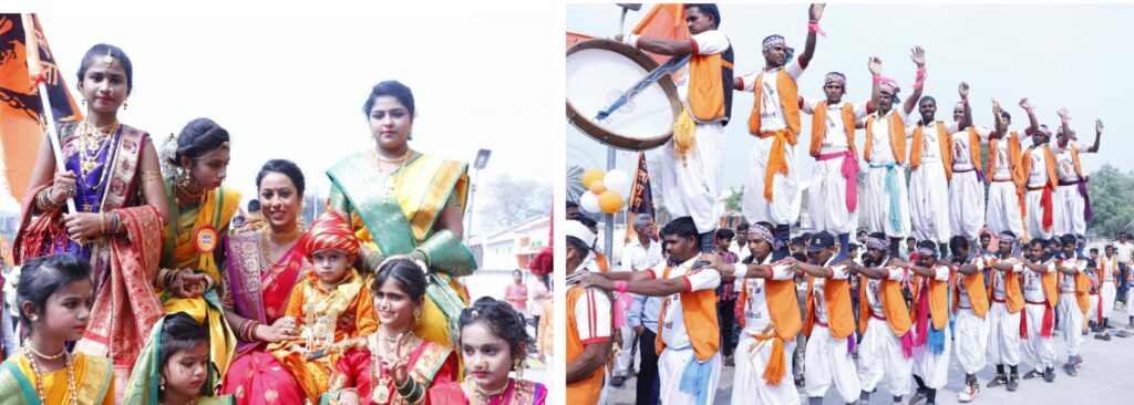 यावेळी बिगबॉस तारका मीनल शहा राजमाता जिजाऊंच्या वेशात व शिवतेज शिंदे हा बाल छत्रपती शिवराय यांच्या वेशात रथावर आरूढ झाले. सोबत सईबाई , ताराराणी, येसूबाई, हिरकणी यांच्या वेशभूषा केलेल्या बालिकांचा समावेश असलेला रथ मावळ्यांनी ओढून मिरवणूक काढली. शिवभक्तांनी ‘जय जिजाऊ.. जय शिवराय ! छत्रपती शिवरायांच्या जयघोषांनी संपुर्ण परिसर दणाणून सोडला होता. ढोल-ताशाच्या गजरात बजरंगबली टिपरी डान्स पथकाने चित्तथरारक प्रात्यक्षिके सादर करून लक्ष वेधून घेतले. सायरादेवी बोहरा स्कुल च्या विद्यार्थ्यांनी नृत्य नाटिका, प्रतापगडाच्या पराक्रम सादर केला. मोरया नाट्य संस्थेच्या वतीने मिरवणूकीतील जिजाऊ शिवरायांच्या रथाचे पूजन करण्यात आले. याप्रसंगी प्रांताधिकारी सौ.सिमा अहिरे, पोलिस निरीक्षक जयपाल हिरे, मा.आ.शिरिषदादा चौधरी, न.प.प्रशासन अधिकारी प्रशांत सरोदे, संजय चौधरी, डॉ अनिल शिंदे, पारोळाचे मा.नगराध्यक्ष सुरेंद्र बोहरा, अॅड.दिनेश पाटील, सौ.सुलोचना वाघ यांचेसह विविध क्षेत्रातील मान्यवरांनी उपस्थित राहून शिवरायांना अभिवादन केले. याप्रसंगी विविध वेशभूषेत असलेल्या बालकांना बिगबॉस तारका मिनल शहा, कृ.उ.बाजार समितीच्या प्रशासक, अॅड.तिलोत्तमा पाटील आदींच्या हस्ते प्रमाणपत्र व श्री.मंगल फोटो देऊन गौरविण्यात आले.