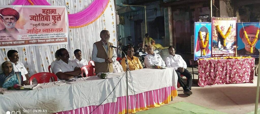 महाराष्ट्रासह देशातील अनेक प्रातांत त्यांची जयंती साजरी करण्याची प्रथा त्यांनी सुरू केली आणि एका नव्या अध्यायाला सुरुवात झाली. त्यांनी राजसत्तेसह धर्मसत्तेच्या अनिष्ट प्रथा विरुद्ध दंड थोपटले आणि देशात सर्वप्रथम महिलांच्या शिक्षणाचा प्रश्न मार्गी लावला.त्यामुळे आज महिला समोर विकासाच्या प्रवाहात पुढे दिसताहेत असेही वाघ यांनी अमळनेर येथील माळीवाडा परिसरातील त्रिमूर्ती चौकात आयोजित करण्यात आलेल्या सभेत सांगितले. महात्मा फुले स्मृतिदिन निमित्ताने सामाजिक कार्यकर्ते रणजित शिंदे यांनी स्वतःच्या जन्मदिवसानिमित्त एक सामाजिक उपक्रम राबवित प्रायोजकत्व केले. याप्रसंगी माळी समाज अध्यक्ष मनोहर महाजन यांनी म. फुलेंच्या कार्याचा आढावा घेत इतिहासात फुले यांच्या शिवकार्याचे श्रेय दुसऱ्यांनी घेतल्याचा घणाघात केला. समारोप भाषणात प्रा.डॉ.लिलाधर पाटील यांनी फुले यांनी संधी उपलब्ध करून दिल्यास गुणवत्ता सिद्ध करता येते हे तत्व बहुजन समाजासाठी आपल्या कार्यातून मांडले असे सांगितले. प्रास्ताविक युवा कल्याण प्रतिष्ठान चे अध्यक्ष प्रा.अशोक पवार यांनी केले. सूत्रसंचालन धीरज महाजन यांनी केले. आभार मासिक माळीभूषण चे संपादक प्रा भिमराव महाजन यांनी व्यक्त केले.
