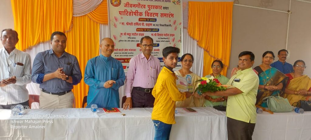 अमळनेर : सध्या स्पर्धेचे युग आहे. स्पर्धेत टिकायचे असेल तर शाळेतील विविध स्पर्धामध्ये सहभागी झाले पाहिजे. निबंध स्पर्धेच्या माध्यमातून विद्यार्थ्यांना विचार करण्यास वाव मिळतो. हिंदी भाषा ही देशाची संपर्काची भाषा आहे. हिंदी अध्यापक मंडळ भाषेचा प्रचार करण्यासाठी तत्पर असते. विद्यार्थ्यांच्या कल्पना शक्तीला वाव मिळतो आहे. राष्ट्रनिर्माणात हिंदीचे योगदान महत्त्वाचे असून हिंदी अध्यापक मंडळाचे कार्य कौतुकास्पद आहे असे मत अमळनेर गटशिक्षणाधिकारी विश्वासराव पाटील यांनी निबंध स्पर्धेच्या बक्षीस वितरण समारंभात व्यक्त केले. ते अमळनेर येथील सानेगुरुजी शिक्षक पतपेढीच्या सभागृहात झालेल्या कार्यक्रमात मार्गदर्शन करतांना बोलत होते. व्यासपीठावर शहादा युनियन बँकेचे प्रबंधक मयुर पाटील, माजी गटशिक्षणाधिकारी शर्मिला चव्हाण, साने गुरुजी शिक्षण प्रसारक मंडळाचे सचिव संदीप घोरपडे, खान्देश शिक्षण मंडळाच्या विश्वस्त सौ.वसुंधरा लांडगे, श्रीमती भारती भांडारकर, सौ.निरंजना वानखेडे, श्री.राजेंद्र निकम सर, प्रताप महाविद्यालयाच्या उपप्राचार्य प्रा.डॉ.कल्पना पाटील (ग्रामीण परीक्षक), प्रा.सोपान भवरे (शहरी परीक्षक) होते. डॉ.बाबासाहेब आंबेडकर यांची प्रतिमा पूजनाने कार्यक्रमास सुरुवात करण्यात आली.