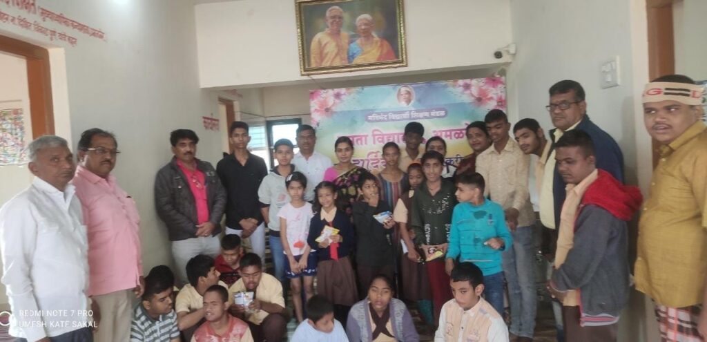 अमळनेर : येथील ममता विद्यालयातील विद्यार्थी- विद्यार्थिनींना “स्वर्गीय भूमिका उमेश काटे” हिच्या द्वितीय स्मृतिदिनानिमित्त शिवशाही फाउंडेशन तर्फे खाऊ वाटप करण्यात आले. दिव्यांग विद्यार्थ्यांचा सर्वांगीण विकास करण्यासाठी तसेच स्वावलंबनाचे धडे देण्यासाठी ममता विद्यालयातील शिक्षकांचे कार्य कौतुकास्पद असल्याचे दिसून आले. शाळेतील दिव्यांग विद्यार्थी प्रत्येक उपक्रमात सहभागी होतात. नुकताच या विद्यार्थ्यांनी प्रजासत्ताक दिनानिमित्त पोलीस कवायत मैदानावर सादर केलेल्या गीताचे कौतुक करण्यात आले. त्यांना मान्यवरांच्या हस्ते सन्मानित ही करण्यात आले. यावेळी शिवशाही फाउंडेशनच्या अध्यक्ष जयेशकुमार काटे, सचिव उमेश काटे, यशोदीप सोनवणे, वैशाली सोनवणे, प्राथमिक शिक्षिका गायत्री काटे, प्रा निकिता काटे, वेदांत सोनवणे, शाहूराजे काटे, दक्षता काटे आदीसह मुख्याध्यापक विनोद पाटील, शिक्षक राजेंद्र मनोरे, कल्पना ठाकूर, वैशाली राऊळ, वासुदेव कोळी, शांतीलाल पाटील, रामचंद्र धनगर, नामदेव जाधव आदी उपस्थित होते.