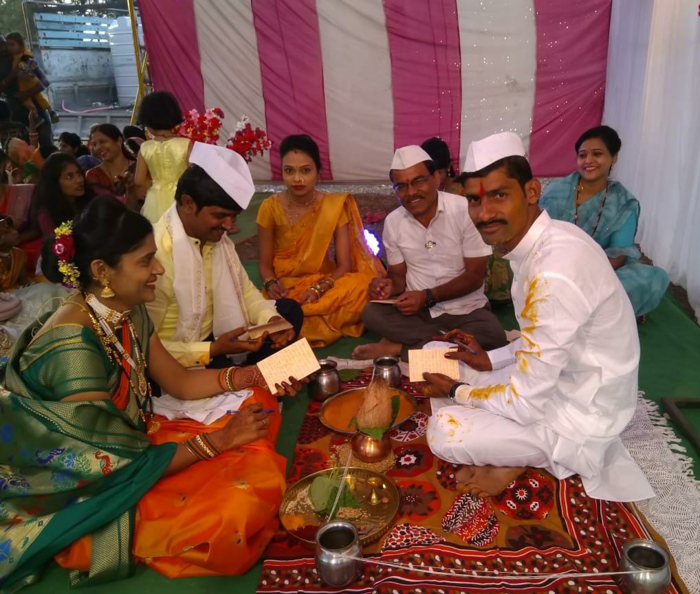 अमळनेर तालुक्यातील जानवे येथील माजी सरपंच भटू पाटील यांचे सुपुत्र शुभम भटू पाटील व श्रीराम गंगाराम देवरे यांची कन्या चिसौका गायत्री यांनी हळदीच्या समारंभात वऱ्हाडी मंडळीसह वधु वर यांनी देखील मुख्यमंत्री, उपमुख्यमंत्री यांच्या नावे धरणासाठी पत्र लिहून आपले सामाजिक उत्तरदायित्व पार पाडले. शिवधर्म पद्धतीने पार पडलेल्या या हळदीच्या लग्न सोहळ्यात आर.बी.पाटील, सौ.वसुंधरा लांडगे यांनी विधिवत कार्य पार पाडतांना सामाजिक योगदान देण्याचा आदर्श वधू-वर यांनी त्यांच्या नातेवाईक मंडळींसह निर्माण केला आहे. याप्रसंगी ज्येष्ठ शेतकरी नेते प्रा.शिवाजीराव पाटील, विश्वास पाटील, मा.सभापती श्याम अहिरे, माजी सरपंच रावसाहेब पाटील, सौ.रुपाली पाटील, दिनेश पाटील यांचेसह आजी माजी ग्रा.पं.चे पदाधिकारी उपस्थित होते.