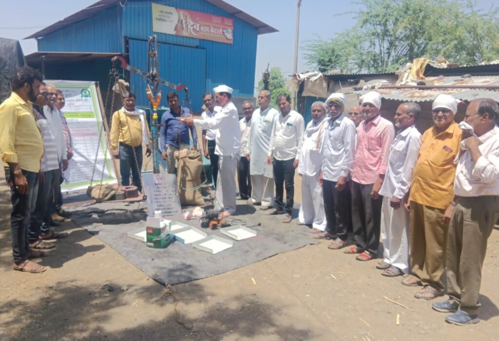 अमळनेर : तालुक्यातील अमळगाव येथे ॲग्री टेक फेड फार्मर प्रोड्युसर कंपनीतर्फे नाफेड अंतर्गत शासकीय हरभरा हमीभाव केंद्र नुकतेच सुरु करण्यात आले. सर्वप्रथम प्रगतीशील शेतकरी सचिन जयवंतराव पाटील यांच्या हस्ते गजानन महाराज यांच्या प्रतिमेचे व वजन काट्याचे पूजन करुन उद्घाटन करण्यात आले. सधन कास्तकार रमेश यशवंत पाटील यांचा टोपी व रुमाल देऊन सत्कार करण्यात आला.