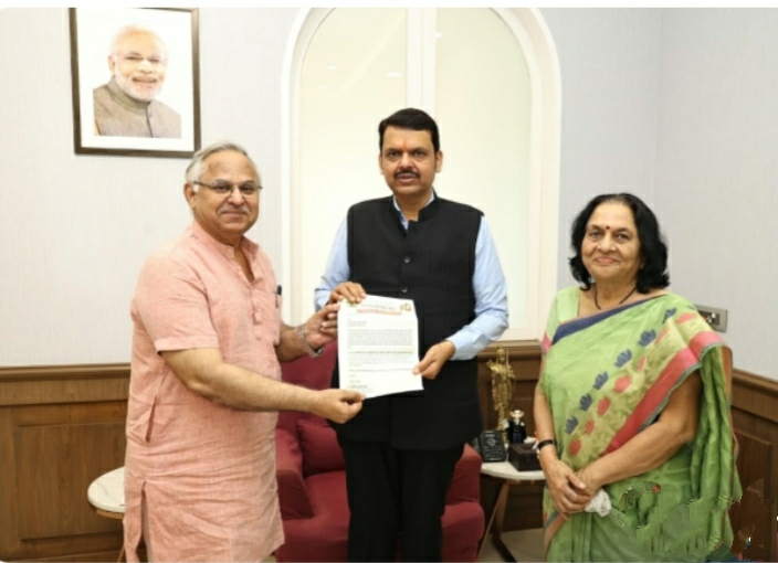 अमळनेर (साने गुरुजी साहित्य नगरी) : येथे होणाऱ्या ९७ वे अखिल भारतीय मराठी साहित्य संमेलनासाठी राज्य शासनातर्फे सर्वतोपरी सहकार्य करण्यात येईल, असे आश्वासन राज्याचे उपमुख्यमंत्री देवेंद्र फडणवीस यांनी दिले. संमेलनाचे समन्वयक प्रा. डॉ. नरेंद्र पाठक व साहित्य महामंडळाच्या कार्यवाह प्रा. डॉ. उज्ज्वला मेहेंदळे यांनी ना.फडणवीस यांना भेटून साहित्य संमेलनाचे निमंत्रण दिले. यावेळी ना.फडणवीस यांनी संमेलनाच्या तयारीची सविस्तर माहिती घेत कामाबद्दल समाधान व्यक्त केले. संमेलनासाठी उपस्थित राहण्याचे आश्वासन देखील त्यांनी दिले.