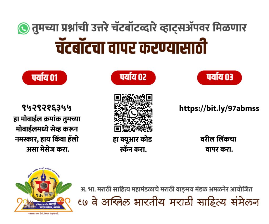संमेलनाशी संबंधित माहिती मिळविण्यासाठी सर्वप्रथम तुम्हाला ९५२९२१६३५५ हा मोबाईल क्रमांक तुमच्या मोबाईलमध्ये सेव्ह करावा लागेल. या क्रमांकावर नमस्कार, हाय किंवा हॅलो असा मेसेज केल्यानंतर तुम्हाला, ‘नमस्कार, अखिल भारतीय मराठी साहित्य संमेलन २०२४ च्या चॅटबॉटवर तुमचे हार्दिक स्वागत आहे. कृपया खालील पर्यांयापैकी योग्य पर्याय निवडा.’ असा मेसेज येईल. त्यात खाली दिलेल्या मेनूवर क्लिक केल्यानंतर तुम्हाला साहित्य संमेलनाशी निगडित प्रश्नांची यादी दिसेल. त्यापैकी कोणताही प्रश्न निवडल्यास त्याचे उत्तर तात्काळ तुमच्या मोबाईलवर पाठविण्यात येईल. यात प्रामुख्याने उल्लेख करावयाचा म्हटल्यास, ‘चॅट बॉट’च्या माध्यमातून संमेलनाचे संकेतस्थळ, प्रतिनिधी व ग्रंथदालन नोंदणी, निवास व्यवस्था, भोजनाचा मेनू, तसेच चार दिवसांत होणाऱ्या कार्यक्रमांची माहिती मिळणार आहे. याशिवाय संमेलनस्थळी कसे पोहचावे ? संपर्क कुणाशी करावा ? याची माहिती व्हॉट्सअॅपवर मिळणार आहे. ज्यांना चॅटबॉटचा मोबाईल क्रमांक माहित नसेल त्यांना ‘लिंक’ किंवा व ‘क्यूआर कोड’च्या माध्यमातून देखील ‘चॅट बॉट’चा वापर करता येणार आहे.