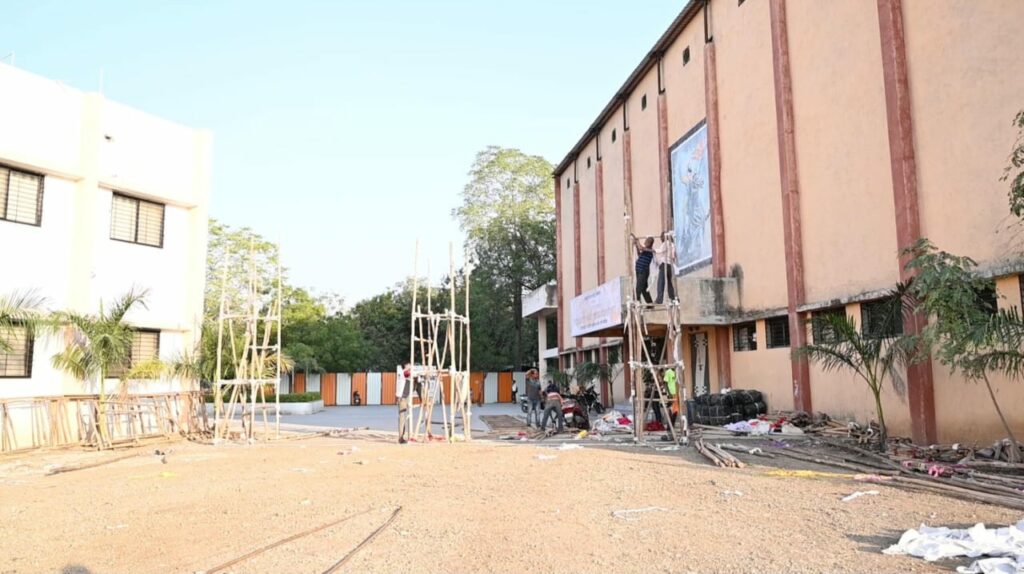 अमळनेर (साने गुरुजी साहित्य नगरी) : येथे २, ३ व ४ फेब्रुवारी २०२४ रोजी होत असलेल्या ९७ व्या अखिल भारतीय मराठी साहित्य संमेलनाची जय्यत तयारी सुरु असून पूज्य साने गुरुजींची कर्मभूमी असलेल्या प्रताप महाविद्यालयाच्या परिसरात भव्य अशी ‘साने गुरुजी साहित्य नगरी’ उभारण्यात येत आहे. साहित्य संमेलनासाठी तीन सभागृह उभारण्यात येत असून सभामंडप क्र.१ ला खान्देशकन्या बहिणाबाई चौधरी व्यासपीठ नाव देण्यात आले आहे तर सभामंडप क्र.२ ला कविवर्य ना.धो.महानोर सभागृह व सभामंडप क्र.३ बालकवी त्र्यंबक बापूजी ठोंबरे सभागृह असे नामकरण करण्यात आले आहे. परिसरात तीन सभागृहांची उभारणी, व्यासपीठ, ग्रंथप्रदर्शन दालन उभारणी जागेचे सपाटीकरण, परिसरातील अंतर्गत रस्ते बांधकाम, स्वच्छतागृह उभारणी, पार्किंग व्यवस्था आदी कामे जोमाने सुरु असल्याची माहिती मराठी वाङ्मय मंडळाचे अध्यक्ष डॉ. अविनाश जोशी यांनी दिली.