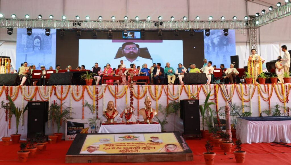 अमळनेर (पूज्य साने गुरुजी साहित्य नगरी) : पूज्य साने गुरुजी आणि निसर्गकन्या बहिणाबाई चौधरी यांना मरणोत्तर ‘भारतरत्न’ देण्यात यावा यासह विविध १० ठराव ९७ व्या अखिल भारतीय मराठी साहित्य संमेलनात मांडण्यात आले. दिनांक २ फेब्रुवारी पासून सुरू झालेल्या संमेलनाचे रविवारी सायंकाळी सूप वाजले. समारोपाच्या कार्यक्रमाला मुख्यमंत्री एकनाथ शिंदे यांनी ऑनलाईन हजेरी लावली. खान्देशला साहित्याचा मोठा वारसा लाभला आहे. समाजात साहित्याचे स्थान हे कायम आदरणीय आणि पूजनीय राहिले असल्याचे मुख्यमंत्री एकनाथ शिंदे यांनी सांगितले. गेल्या तीन दिवसांपासून सुरू असलेल्या ९७ व्या अ. भा. मराठी साहित्य संमेलनाचा रविवार, दिनांक ४ फेब्रुवारी रोजी समारोप झाला. समारोप प्रसंगी मुख्यमंत्री शिंदे ऑनलाईन लाईव्ह उपस्थित होते. संमेलनाचे अध्यक्ष प्रा.डॉ.रवींद्र शोभणे अध्यक्षस्थानी होते. व्यासपीठावर विधान परिषदेच्या उपसभापती नीलम गोऱ्हे, भाषा-शालेय शिक्षणमंत्री दीपक केसरकर, पालकमंत्री गुलाबराव पाटील, खासदार उन्मेश पाटील, जिल्हाधिकारी आयुष प्रसाद, महामंडळाच्या अध्यक्षा डॉ.उषा तांबे, उपाध्यक्ष रमेश वंसकर, कार्याध्यक्षा उज्ज्वला मेहेंदळे, कोषाध्यक्ष प्रकाश पागे, समन्वयक प्रा. डॉ. नरेंद्र पाठक, संमेलन सचिव राजेंद्र भामरे, सहसचिव डिगंबर महाले, कोषाध्यक्ष नीरज अग्रवाल, मराठी वाङ्मय मंडळ, अमळनेरचे अध्यक्ष डॉ. अविनाश जोशी व सदस्य उपस्थित होते.