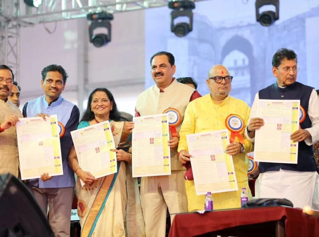 अमळनेर : येथील साई इंग्लिश अकॅडमीचे संचालक भैय्यासाहेब मगर यांच्या इंग्लिश ग्रामर फॉर्म्युला पुस्तिकेचे प्रकाशन राज्याचे शिक्षण मंत्री दीपक केसरकर यांच्या हस्ते नुकतेच करण्यात आले. यावेळी व्यासपीठावर विधान परिषदेच्या उपसभापती नीलमताई गोऱ्हे, मदत व पुनर्वसन मंत्री आनिलदादा पाटील, जिल्ह्याचे पालकमंत्री गुलाबराव पाटील, जळगावचे खासदार उन्मेष पाटील, अखिल भारतीय मराठी साहित्य संमेलनाचे संमेलनाध्यक्ष प्रा. डॉ. रविंद्र शोभणे, अखिल भारतीय मराठी साहित्य महामंडळाच्या अध्यक्षा प्रा. उषाताई तांबे, पुणे सिनेट सदस्य राजेश पांडे, जिल्हाधिकारी आयुष प्रसाद उपस्थित होते.