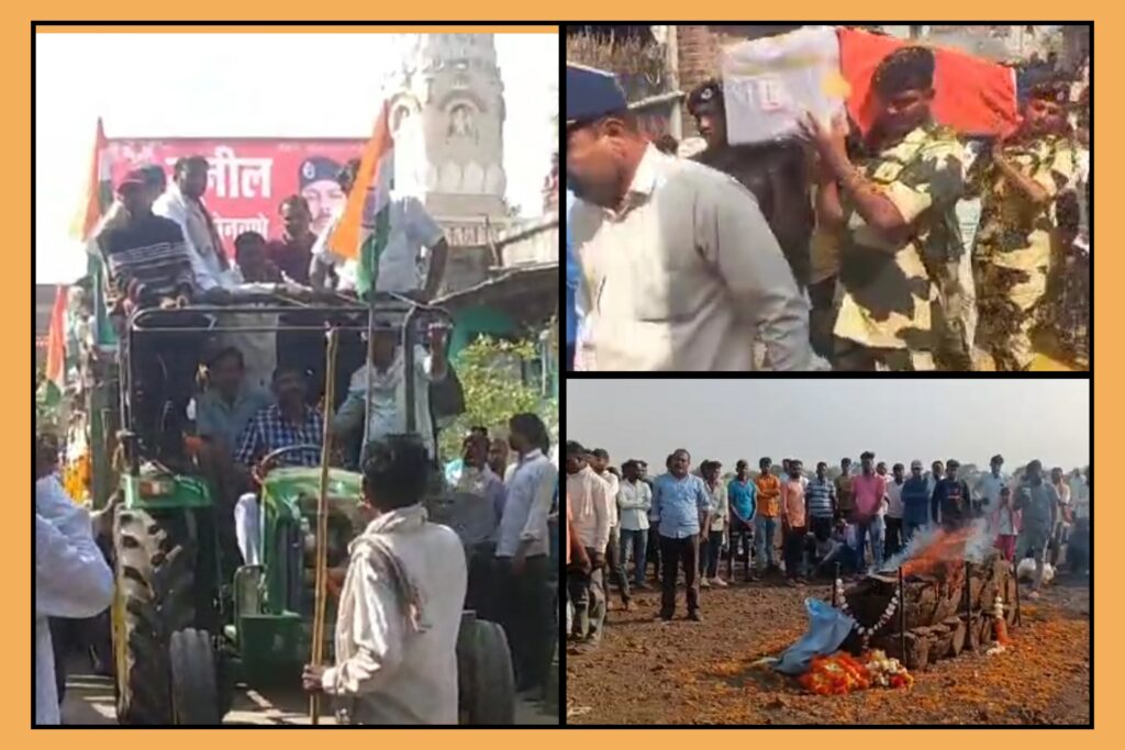 अमळनेर : तालुक्यातील खवशी बुद्रुक येथील रहिवासी सुरेश धुडकू भिल यांचा मुलगा स्व. सुनिल सुरेश सोनवणे सीमा सुरक्षा बल (बीएसएफ) मध्ये कार्यरत असताना मणिपूर हुन सुट्टीवर येत असताना काळाने घात केला. दि. १४ फेब्रुवारी रोजी नागालँड मधील दीमापूर येथे जवान सुनिल चे निधन झाले. दुसऱ्या दिवशी सदर वार्ता गावात कळाल्यावर गाव शोकसागरात बुडाले. दिनांक १६ फेब्रुवारी रोजी दुपारी जवानाचा पार्थिव देह मूळ गावी खवशी येथे कुटुंबियांना अंत्यदर्शनासाठी ठेवण्यात आला. सीमा सुरक्षा बल (बीएसएफ) जवानांची टीम दुपारी गावात पार्थिव देह घेऊन आल्यानंतर आप्तेष्ट नातेवाईक, गावातील महिला, पुरुषांनी त्यांचे निवासस्थानी एकच गर्दी केली होती. यावेळी कुटुंबियांनी आक्रोश केला. उपस्थितांचेही डोळे पाणावले.