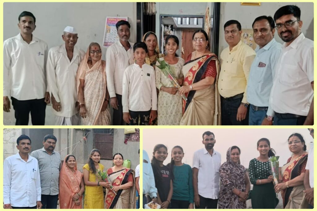 अमळनेर : येथील सावित्रीबाई फुले माध्यमिक व उच्च माध्यमिक विद्यालयाने दहावीच्या वर्गाची शंभर टक्के निकालाची परंपरा कायम राखली आहे. या पार्श्वभूमीवर “शाळा- आपल्या दारी” या उपक्रमांतर्गत या गुणवंत “सावित्रीच्या लेकीं”चा आई- वडिलांसह घरी जाऊन सन्मान केला. गुणवंतांना पेढे भरवून हा आनंदाचा क्षण साजरा केला. ग्रामीण भागात अनोख्या पध्द्तीने झालेल्या या सन्मानाने पालक- विद्यार्थी सुखावले आहेत. विशेष म्हणजे सर्व विद्यार्थिनी या “शेतकरी कन्या” आहेत. येथील सावित्रीबाई फुले माध्यमिक विद्यालयात दिव्या किरण पाटील (रा.सडावण) हिने ९२.४० टक्के गुण मिळवून प्रथम, डिंपल समाधान पाटील (रा.सुंदरपट्टी ) हिने ९१.२० टक्के गुण मिळवून द्वितीय, प्राची दत्तात्रय पाटील (रा.सुंदरपट्टी ) हिने ९०.६० टक्के गुण मिळवून तृतीय तर कनिष्का देवानंद पाटील (रा.सडावण) हिने ८९.२० टक्के गुण मिळवून चतुर्थ क्रमांक तर वैष्णवी विनोद पाटील (रा.सुंदरपट्टी ) हिने ८८.४० टक्के गुण मिळवून पाचवा क्रमांक मिळविला आहे. या पार्श्वभूमीवर सर्व गुणवंत विद्यार्थिनींसह खुशी पाटील, अश्विनी पाटील, भाग्यश्री पाटील, तनुजा पाटील यांचाही जेष्ठ शिक्षिका कल्पना महंत यांच्या हस्ते सन्मान करण्यात आला.