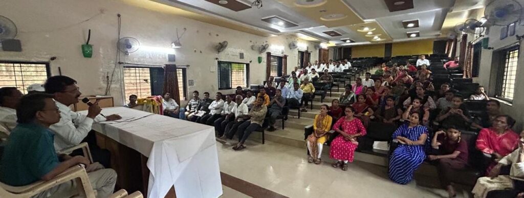 अमळनेर : येथील खानदेश शिक्षण मंडळ संचलित जी. एस. हायस्कूल मधील आयएमए हॉल येथे शनिवार दिनांक १३ रोजी शिक्षक पालक संघाची सभा संपन्न झाली. यावेळी नूतन कार्यकारिणीची निवड करण्यात आली. यात उपाध्यक्षपदी सुखदेव मोतीलाल माळी यांची सर्वानुमते निवड करण्यात आली. बैठकीच्या अध्यक्षस्थानी शाळेचे मुख्याध्यापक बी. एस. पाटील होते. पालक शिक्षक संघाचे माजी उपाध्यक्ष नितीन भदाणे प्रमुख पाहुणे होते. सोबत व्यासपीठावर उपमुख्याध्यापक ए. डी. भदाणे, पर्यवेक्षक एस. आर. शिंगाने, सी. एस. सोनजे, शिक्षक प्रतिनिधी एस. पी. वाघ, पालक शिक्षक संघाचे सचिव पी. एस. काटकर तसेच मागील वर्षाचे पालक शिक्षक संघाचे सदस्य उपस्थित होते.