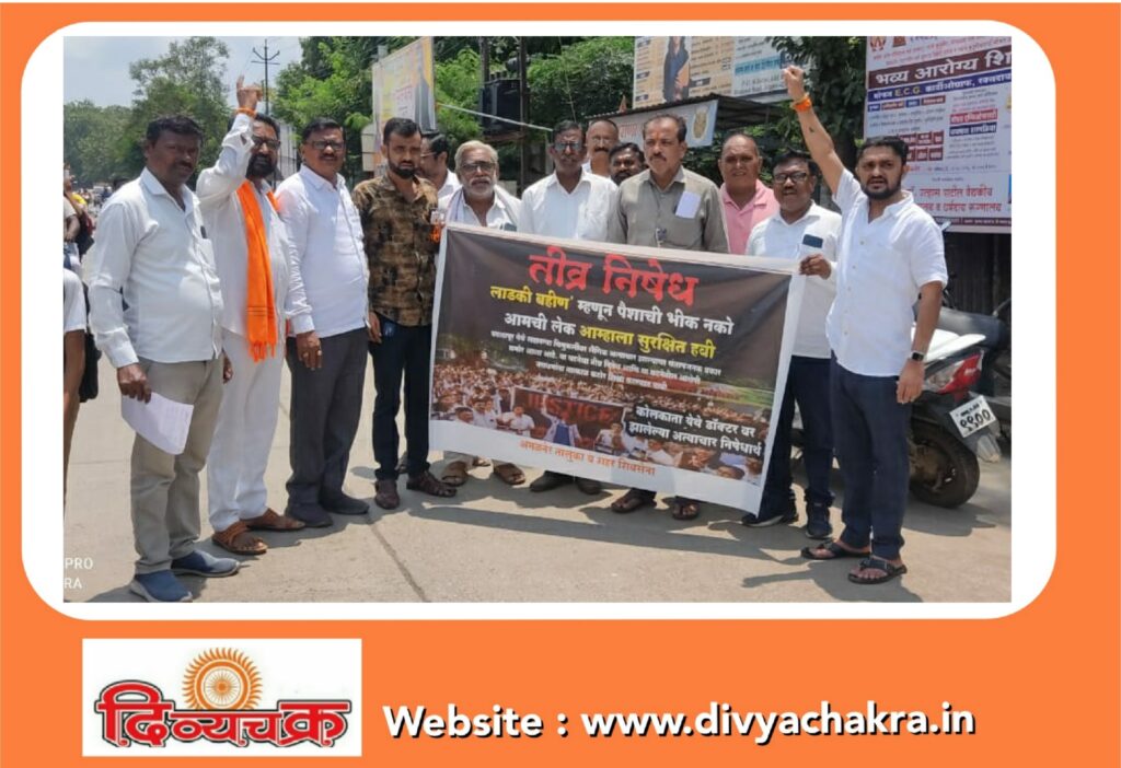 बदलापूर येथील शाळेतील विद्यार्थिनीवर बलात्कार प्रकरण देशाला अस्वस्थ करणारे आहे. यामुळे ‘लाडकी बहीण म्हणून आम्हाला पैशाची भीक नको… आमची लेक आम्हाला सुरक्षित हवी’ अशा आशयाचे बॅनर हातात घेऊन रस्त्यावरुन तहसील कचेरीवर मोर्चा काढून झालेल्या घटनेचा तिव्र निषेध व्यक्त करण्यात आला. याप्रसंगी शिवसेना उबाठा चे तालुकाप्रमुख श्रीकांत पाटील, शहर प्रमुख चंद्रशेखर भावसार, विजय काशिनाथ पाटील, बाळासाहेब नितीन निळे, बाळासाहेब पवार, माजी नगरसेवक दादा पवार, ज्ञानेश्वर पाटील, राजेंद्र मराठे, तुळशीराम कोळी, गोरख पाटील, ज्ञानेश्वर गंगाराम पाटील, रवी पाटील, हिरालाल भिल, नितीन पाटील, मोहन भोई, उमेश अंधारे आदी कार्यकर्ते उपस्थित होते.