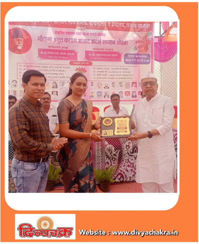 अमळनेर : मौलाना अब्दुल कलाम आझाद सार्वजनिक वाचनालय व ग्रंथालय कर्जोद, ता.रावेर यांच्यातर्फे अमळनेेर येथील रहिवासी व हातेड येथील आरोग्यसेविका सुवर्ण कौतिक धनगर यांना रावेरचे आमदार शिरीष चौधरी यांच्या हस्ते नुकताच आदर्श आरोग्य सेविका पुरस्कार देण्यात आला. सौ. सुवर्णा कौतिक धनगर करणखेडा हायस्कूलचे माध्यमिक शिक्षक आनंदा बापू धनगर यांच्या धर्मपत्नी आहेत.