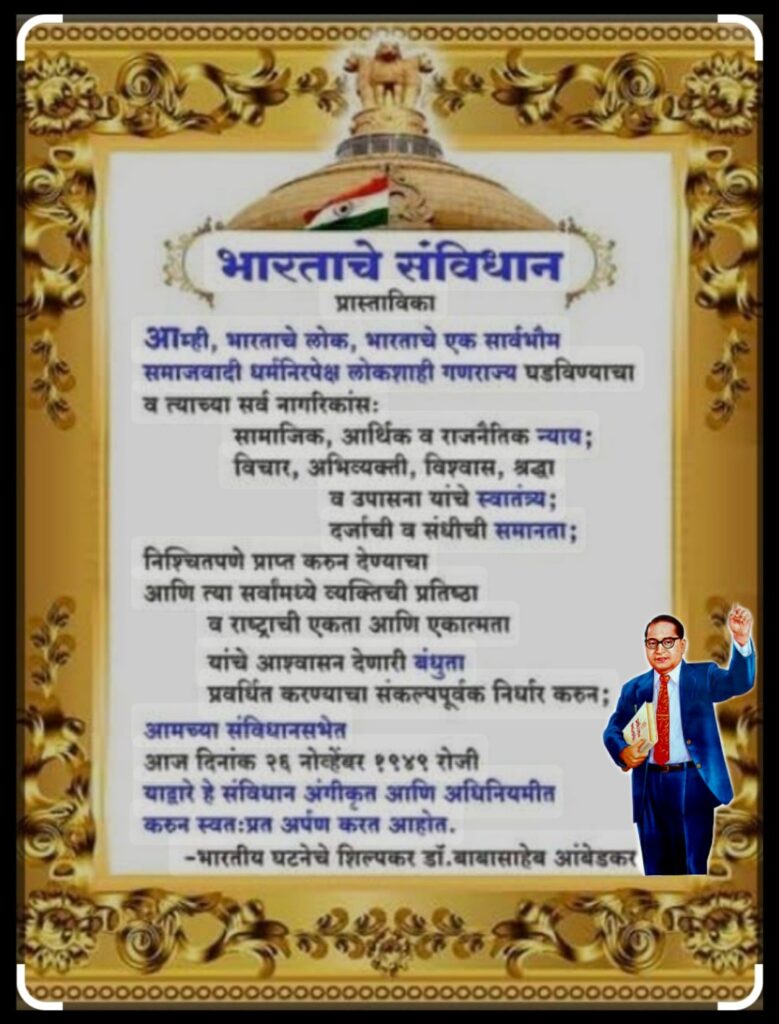 डॉ. बाबासाहेब आंबेडकर यांचे नावापुढे महामानव, विश्वभूषण, भारतरत्न, बोधिसत्व, प्रज्ञावंत, प्रज्ञासूर्य अशा अनेक उपाधी लागल्या आहेत यावरुनच त्यांचे विस्तृत कार्य लक्षात येते. मानवी मूल्यांची जोपासना व मानवी मूल्यांच्या उत्थानासाठी डॉ. बाबासाहेब आंबेडकर यांनी आयुष्य वेचले आहे. स्वातंत्र्य, समता, बंधुता, एकता, सर्वधर्म समभाव, मानवता या मानवी मूल्यांची देणगी दिली आहे. आपले संपूर्ण आयुष्य दीन, दलित, वंचित, शोषित, पिडीत, कामगार, शेतकरी, आदिवासी, ओबीसी, अल्पसंख्यांक समुदायासाठी समर्पित केल्याचे दिसते. त्यांच्या जीवनातील अनेक घटनांचा वेध घेता, मानव कल्याणासाठी प्रचंड संघर्ष केल्याचे लक्षात येते. वंचित, शोषित, दलित, मागासवर्गीय, आदिवासी, ओबीसी समाजास हक्क मिळवून दिले आहेत. मानवी मूल्यांची जोपासना ही भारतीय राज्यघटनेची देणगी आहे. याचे सारे श्रेय डॉ. बाबासाहेब आंबेडकर यांना जाते. भारतीय राज्यघटना ही नुसते कायदे कानून असलेला दस्ताऐवज नाही तर सर्वसामान्य जनतेचा श्वास आहे. भारतीय राज्यघटनेमध्ये सर्वच घटकांना न्याय देण्याची भूमिका असल्याने म्हणावेसे वाटते…