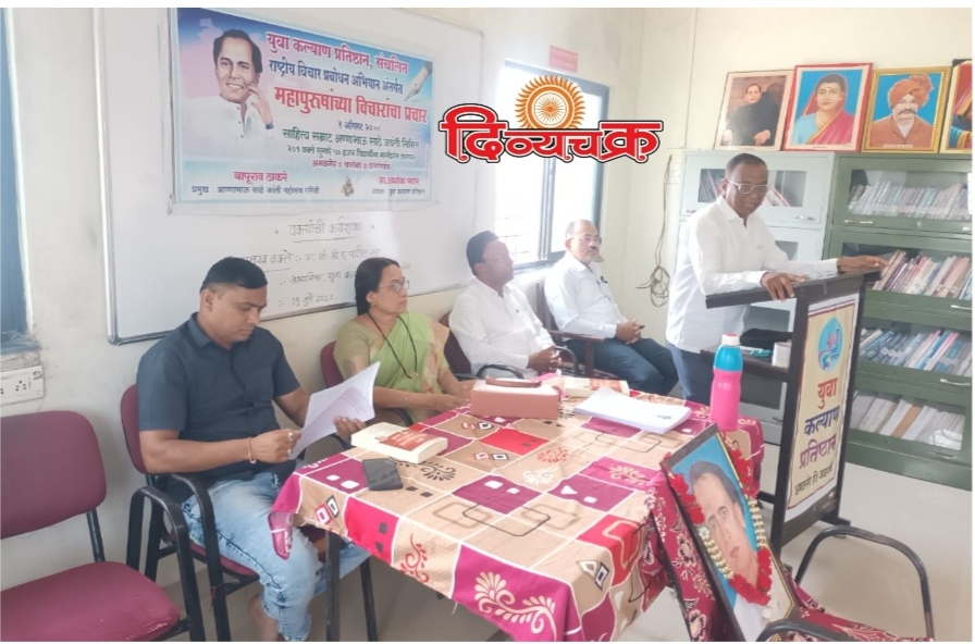 अमळनेर : येथील युवा कल्याण प्रतिष्ठान संचलित राष्ट्रीय विचार प्रबोधन अभियान अंतर्गत साहित्य सम्राट अण्णाभाऊ साठे जयंतीच्या पार्श्वभूमीवर ‘वक्त्यांची कार्यशाळा’ आयोजित करण्यात आली होती. शनिवार, दि.१९ जूलै रोजी विठ्ठल नगर, पिंपळे रोड, अमळनेेर येथील अभ्यासिका केंद्रात कार्यशाळा झाली. कार्यक्रमाच्या अध्यक्षस्थानी युवा कल्याण प्रतिष्ठानचे अध्यक्ष प्रा. अशोक पवार होते. व्यासपीठावर प्रमुख वक्ते म्हणून दयाराम पाटील, सत्कारार्थी निवृत्त मुख्याध्यापिका सौ. गायत्री भदाणे, सत्कारार्थी निवृत्त पोलीस कॉन्स्टेबल सुनिल महाजन, डॉ. प्रा. राहुल निकम उपस्थित होते.