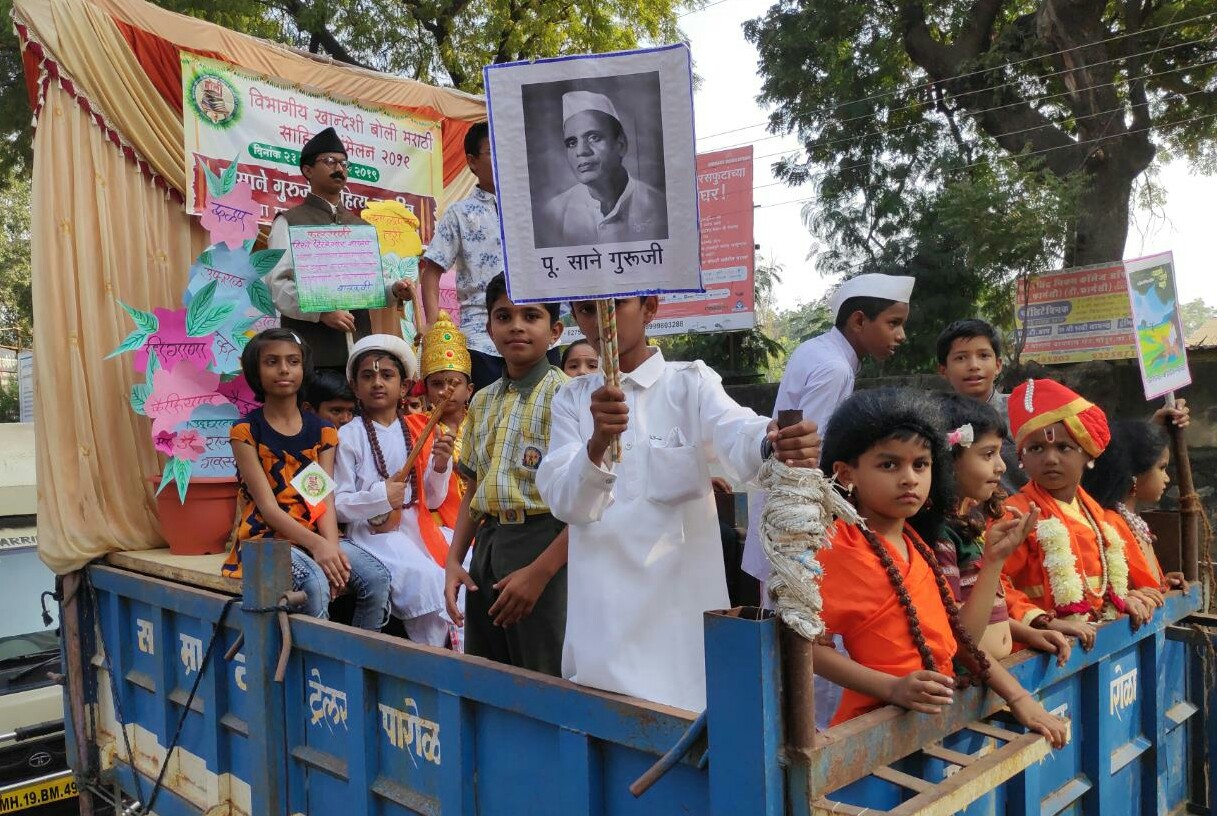 अमळनेर : महाराष्ट्र राज्य साहित्य आणि संस्कृती मंडळ पुरस्कृत, पू. साने गुरुजी ग्रंथालय व मोफत वाचनालय आयोजित विभागीय खान्देशी बोली मराठी साहित्य संमेलनाचे उद्घाटनापुर्वी सानेगुरुजी ग्रंथालय व वाचनालय येथून साहित्य चळवळीतील मान्यवरांनी ग्रंथ ठेवलेल्या पालखीला उचलून ग्रंथदिंडी चा शुभारंभ केला. संस्कृती व संस्कारांचा जागर करणारी ग्रंथदिंडी तुतारी-ढोल ताश्यांच्या गजरात वाजत गाजत पाचपाऊली देवी मंदिर, बसस्थानक, धुळे रोड, विश्राम गृह, स्टेशन रोड मार्गे छत्रपती शिवाजी नाट्यगृह येथे आणण्यात आली. ग्रंथदिंडी सोहळ्यास संमेलनाध्यक्ष अशोक कोळी, स्वागताध्यक्ष दिलीप सोनवणे, सौ.ज्योतिर्मयी सोनवणे, अहिराणी साहित्यिक कृष्णा पाटील, राज्य साहित्य संस्कृती मंडळाचे सदस्य रमेश पवार, सदस्य अशोक सोनवणे, तहसीलदार आबा महाजन, ग्रंथालय सचिव प्रकाश वाघ आदी मान्यवर होते.