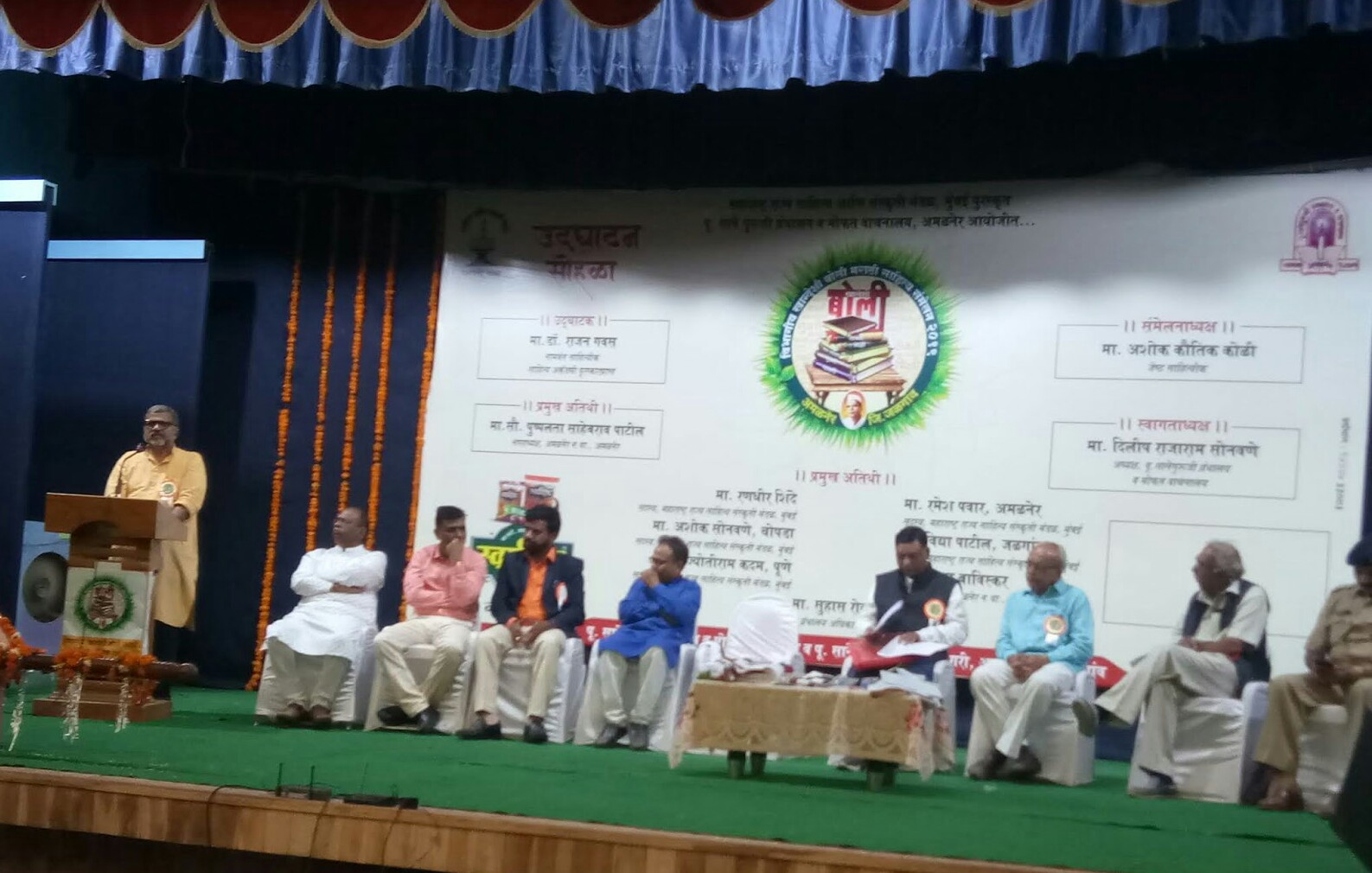 रमेश पवार म्हणाले की, अमळनेर नगरीत विभागीय साहित्य संमेलनाचे आयोजनामुळे अनेक खान्देशी साहित्यिक, लेखक व कवींना संधी प्राप्त करून दिली. याबद्दल आयोजकांचे अभिनंदन करून शुभेच्छा दिल्यात. विभागीय खान्देश बोली साहित्यामुळे बोली भाषेचे महत्त्व वाढेल असे महाराष्ट्र राज्य साहित्य संस्कृती मंडळाचे सदस्य अशोक सोनवणे म्हणाले कि सानेगुरुजी यांच्या कर्मभूमीत साहित्य संमेलन होण्याचा आनंद व्यक्त केला तर साहित्य संमेलनाचा श्रोते आनंद घेण्यापासून वंचित राहतात अशी खंतही व्यक्त केली. उद्घाटन सत्राचे सूत्रसंचालन प्रा. प्रकाश धर्माधिकारी यांनी केले तर आभार दिलीप सोनवणे यांनी मानले.
