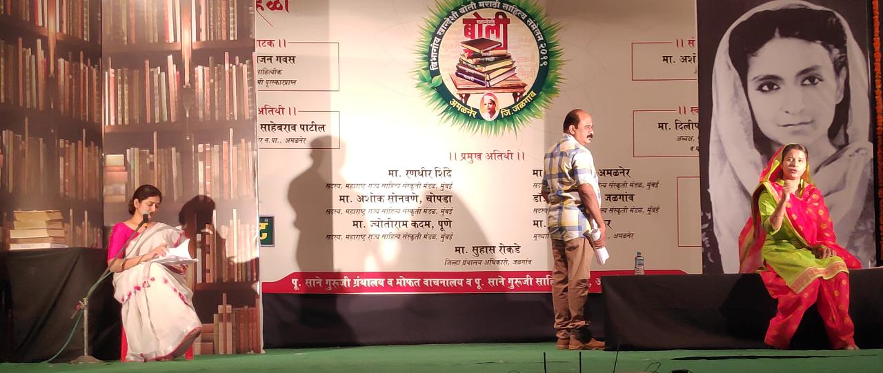 अमळनेर : जेष्ठ रंगकर्मी शंभू पाटील यांनी परिवर्तन जळगाव निर्मित ‘अमृता, साहिर, इमरोज’ या प्रेमनाट्यातून कवयित्री अमृता प्रितम यांच्या जीवनाला रंगमंचावर कलात्मक स्वरूपात अत्यंत प्रभावीपणे सादरीकरण केले. दिग्दर्शिका मंजुषा भिडे, कलाकार जयश्री पाटील, हर्षदा कोल्हटकर, राहुल निंबाळकर, लेखक शंभू पाटील होतेे. यावेेळी ” गांधी नाकारायचा -पण कसा ?” हे अभिवाचन सादर करून उपस्थित रसिक श्रोत्यांना खिळवून ठेवले होते. छत्रपती शिवाजी महाराज नाट्यगृहात पूज्य सानेगुरुजी ग्रंथालय व मोफत वाचनालय आयोजित महाराष्ट्र राज्य साहित्य आणि संस्कृती मंडळ, मुंबई पुरस्कृत विभागीय खान्देशी बोली मराठी साहित्य संमेलनात झालेल्या कार्यक्रमात मोठी गर्दी होती. हृदयाला भेदणारी अशी अमृता प्रीतम यांची कहाणी सगळ्यांच्या हृदयापर्यंत पोहोचली. कलाकारांनी उत्कृष्ट सादरीकरण करून श्रोत्यांची मने जिंकली.त्यानंतर कविसंमेलनही रंगले.