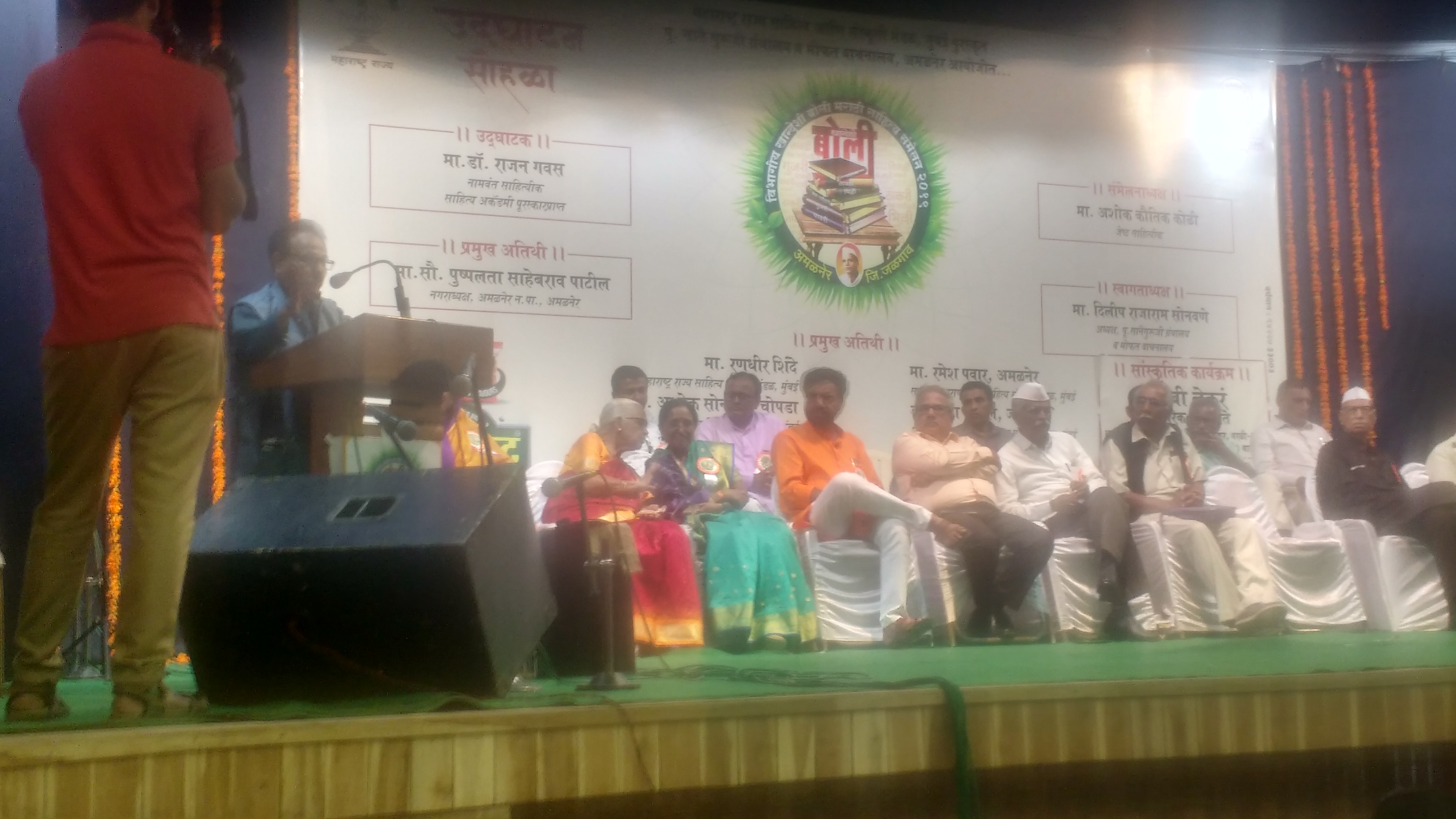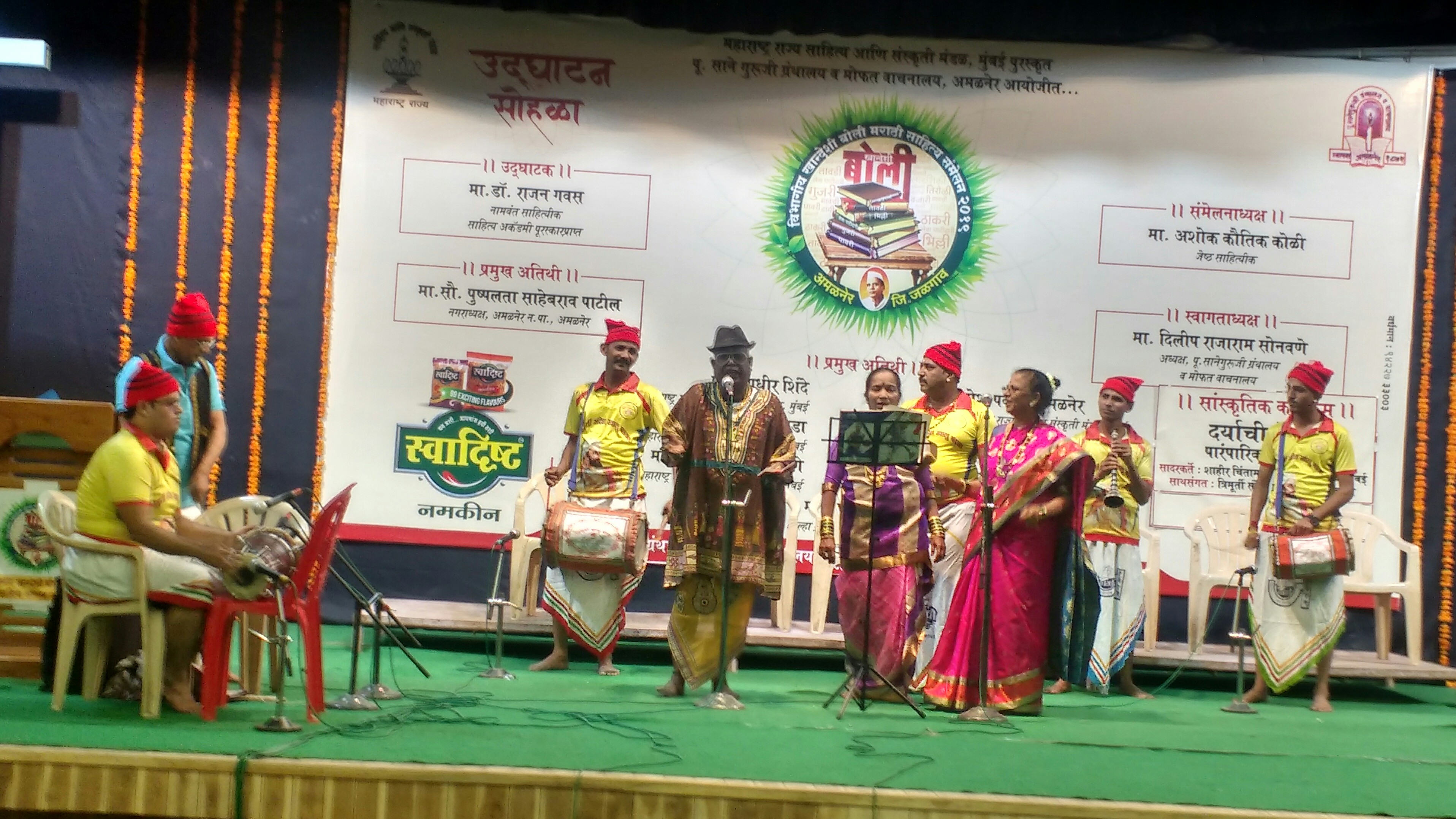 अमळनेर : येथील छत्रपती शिवाजी महाराज नाट्यगृहात सुरु असलेल्या पूज्य सानेगुरुजी ग्रंथालय व मोफत वाचनालय आयोजित महाराष्ट्र राज्य साहित्य आणि संस्कृती मंडळ, मुंबई पुरस्कृत विभागीय खान्देशी बोली मराठी साहित्य संमेलनाचा आज (ता २४) रोजी दुपारच्या सत्रात ग.स.बँकेचे उपाध्यक्ष शामकांत भदाणे यांचे अध्यक्षतेखाली ‘दर्याची लेकरं’ या लोकगीतांच्या कार्यक्रमाने समारोप करण्यात आला. यावेळी व्यासपीठावर म.वा.मंडळाचे अध्यक्ष डॉ.अविनाश जोशी, ज्येष्ठ अहिराणी साहित्यिक कृष्णा पाटील, खा.शि.मंडळाच्या विश्वस्त सौ.वसुंधरा लांडगे, कवी रमेश पवार, ॲड. मनोहर भांडारकर, प्रल्हाद बाविस्कर, सौ विजया बाविस्कर, स्वागताध्यक्ष दिलीप सोनवणे, सचिव प्रकाश वाघ आदी मान्यवर यांची उपस्थिती होती.