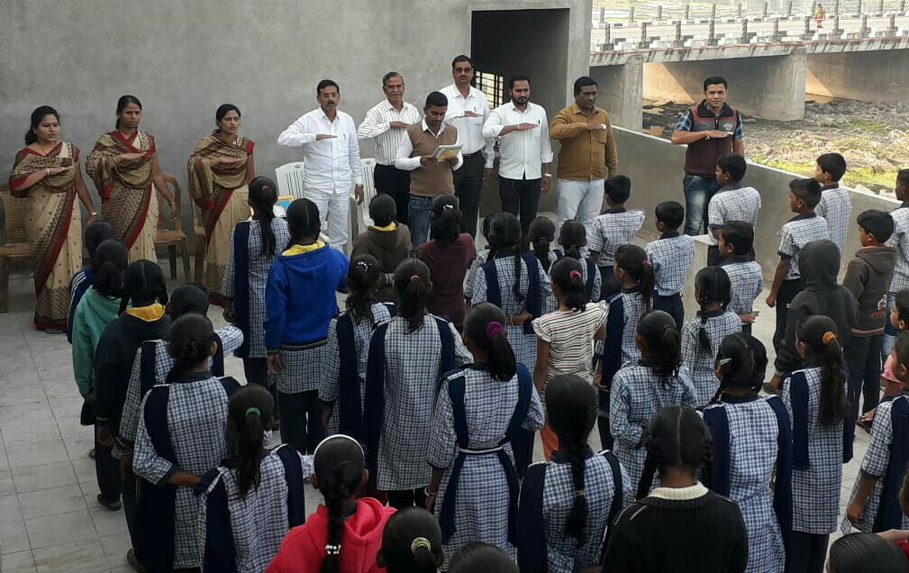 सरस्वती विद्या मंदिर,अमळनेर येथे सामुहिकपणे संविधान उद्देशिकाचे सामूहिक वाचन विद्यार्थ्यानी केले. यावेळी विद्यार्थ्यांना प्रत्यक्ष भारतीय संविधानाची प्रत पाहण्यासाठी उपलब्ध करून ठेवण्यात आली होती. बालकांनी कुतुहलाने भारतीय संविधान न्याहाळले. शाळेचे मुख्याध्यापक रणजित शिंदे यांनी विद्यार्थ्यांना मार्गदर्शन केले. ते म्हणाले की, जगातील सर्वात मोठ्या यशस्वी लोकशाही देशाचे सर्वात मोठं भारतीय संविधान असल्याचा अभिमान सर्वांनी बाळगावा. संविधान दिन साजरा करून लोकशाही, समता, स्वातंत्र्य, बंधुभाव ही मूल्ये आणि राष्ट्राची एकात्मता बळकट करावी असेही आवाहन केले. कार्यक्रमाचे प्रास्ताविक ऋषीकेश महाळपूरकर यांनी केले. सूत्रसंचालन धर्मा धनगर यांनी तर परशुराम गांगुर्डे यांनी आभार मानले. या वेळी उपशिक्षिका संगीता पाटील, गीतांजली पाटील, आनंदा पाटील, संध्या ढबू आदी शिक्षक उपस्थित होते.