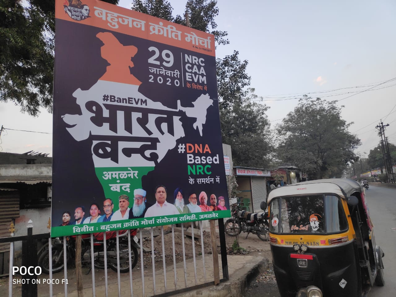 अमळनेर : येथील बहुजन क्रांती मोर्चा च्या वतीने केंद्र सरकारने लादलेल्या हिंदूंसह सर्वच मुस्लिम व इतर धर्मियांना धोकेदायक ठरणाऱ्या एन आर सी, सी ए ए कायद्याच्या विरोधात भारत बंद आंदोलनांतर्गत ता.२९ जानेवारीला अमळनेर बंद चे आवाहन करण्यात आलेले आहे. देशातील १३५ कोटी भारतीय नागरिकांना स्वतःचे नागरिकत्व सिद्ध करण्यासाठी कोर्ट कचेऱ्याच्या फेऱ्या मारायला लावून त्यांच्या जगण्याचा अधिकार ही हिरावून घेण्याचे षडयंत्र केंद्र सरकारने एन आर सी कायद्याच्या माध्यमातून रचलेले आहे. या विरोधात बहुजन क्रांती मोर्चा च्या पदाधिकाऱ्यांनी विविध टॅक्सी, रिक्षा युनियन, व्यावसायिक व व्यापारी संघटनांना व पदाधिकाऱ्यांना प्रत्यक्ष भेटून जाहीर आवाहन केलेले असून अमळनेर शहरातील अनेक संघटना बहुजन, आदिवासी, दलित मुस्लिम ओबीसी तसेच युवकांच्या संघटना या बंद आंदोलनात उत्स्फूर्तपणे सहभागी होणार असल्याचे जाहीर केलेले आहे. बहुजन क्रांती मोर्चा च्या वतीनं अमळनेर शहरात चौकात भारत बंद चे फलक लावण्यात आलेले आहेत. जनजागृती करणारे प्रचार पत्रकही वाटण्यात आलेले आहे. विविध भागात या जाचक एन आर सी कायद्याच्या संदर्भात कॉर्नर बैठका घेऊन बहुजन क्रांती मोर्चा व इतर पुरोगामी संघटनांच्या वतीने नागरिकांना उत्स्फूर्त बंद मध्ये सहभागी होण्याचे आवाहन करण्यात येत आहे.