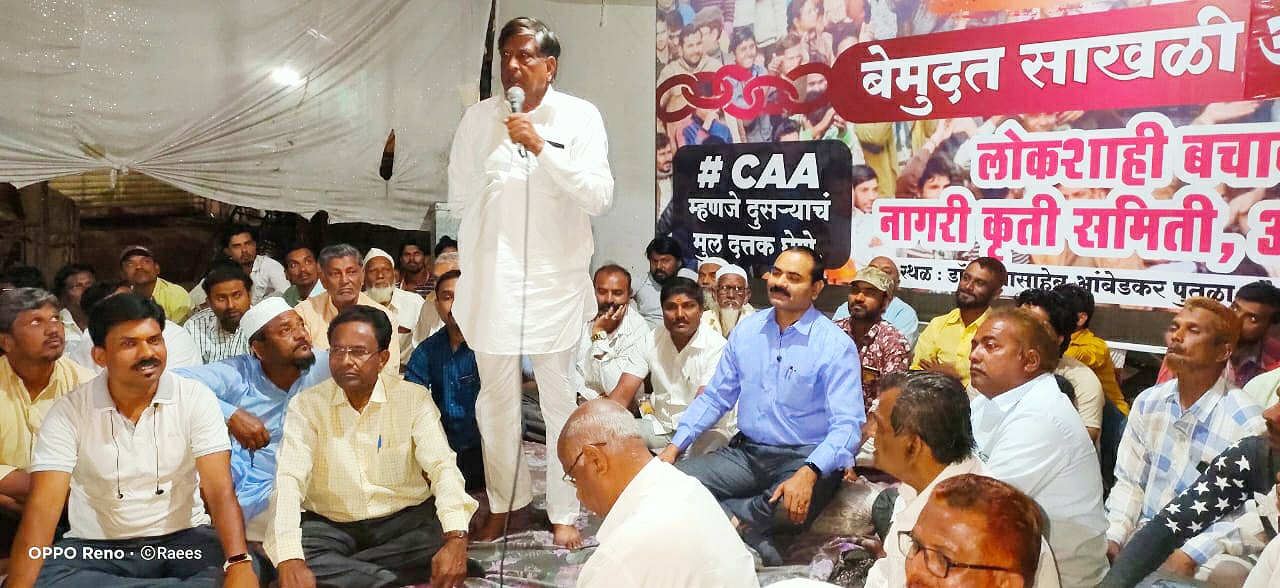 अमळनेर : येथील एन आर सी, सी ए ए विरोधी धरणे आंदोलन महाराष्ट्र शासनाने नेमलेल्या आ.परब समितीच्या निर्णयाच्या अधिन राहून व पोलीस निरीक्षकांच्या आंदोलन मागे घेण्याच्या आवाहनाचा विचार करून लोकशाही बचाव नागरी कृती समितीच्या वतीने अमळनेरात सलग ३७ दिवस सर्वाधिक दिर्घकाळ चाललेले ऐतिहासिक आंदोलन संस्थगित करण्यात आले आहे. अमळनेरात विविध पुरोगामी, लोकशाहीवादी, बहुजन चळवळीतील पदाधिकारी, सामाजिक राजकीय कार्यकर्त्यांनी एकत्र येत एन आर सी, सी सी ए विरोधात मोठे जन आंदोलन उभे केले होते. आंदोलन स्थळी पोलीस निरीक्षक अंबादास मोरे यांनी सतत आंदोलन कर्त्यांच्या संपर्कात राहून कायदा व सुव्यवस्था बाबत चर्चा केली. पोलीस निरीक्षक मोरे यांनी आंदोलन कर्त्यांना आंदोलन मागे घेण्याची विनंती केली. मा.आ.कृषिभूषण साहेबराव पाटील यांनी आंदोलन कर्त्यांच्या वतीने लोकशाही बचाव नागरी कृती समितीच्या कोअर कमिटी चा निर्णय जाहीर करून ३८ व्या दिवसापासून आंदोलन संस्थगित केल्याचे सांगितले.