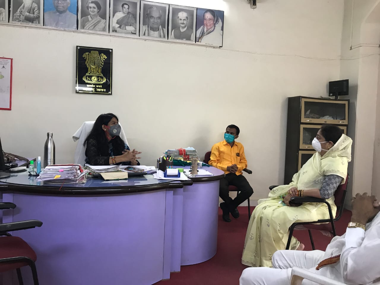अमळनेर : कोरोनाच्या पार्श्वभूमीवर आमदार स्मिताताई वाघ यांनी प्रांताधिकारी सिमा अहिरे, तहसीलदार मिलिंद वाघ, नगरपालिकेच्या मुख्याधिकारी विद्या गायकवाड यांची भेट घेऊन शहरासह तालुक्याचा आढावा घेतला. सर्वतोपरी मदत करण्याची ग्वाही देऊन सर्वांनी मिळून कोरोनाशी लढा देण्याची भावना बोलून दाखवली. आयएमए संघटना आणि खासगी डॉक्टरांच्या माध्यमातून सानेगुरूजी शाळेत सुरू असलेल्या रुग्ण तपासणी केंद्रालाही भेट देवून डॉक्टरांचे विशेष आभार मानले व स्वत:ची काळजी घेण्याचे आवाहन केले. सर्वांच्या सोबतीने कोरोनाशी सुरू असेलली लढाई आपण निश्चितच जिंकू असा विश्वासही त्यांनी सर्वांना दिला. देशभर कोरोना साथीने पाय रोवायला सुरुवात केली आहे. या पार्श्वभूमीवर साथीला आळा घालण्यासाठी पंतप्रधान नरेंद्र मोदी यांनी देशात २१ दिवसांचा लॉकडाऊन जाहीर केला आहे. राज्यात मुख्यमंत्री उद्धव ठाकरे यांनी संचारबंदी लागू केली आहे. यामुळे या काळात नागरिकांनी घरातच राहून कोरोनाशी लढा देणे अपेक्षित आहे. यासाठी आमदार स्मिताताई वाघ यांनी पुढाकार घेतला आहे. भेटीवेळी डॉक्टरांकडे रुग्ण तपासणीसाठी असलेल्या कीटची संख्या अत्यंत तोकडी असल्याचे लक्षात आल्याने आमदार स्मिताताई वाघ यांनी जिल्हा शल्यचिकत्सक आणि माजी मंत्री गिरीश महाजन यांच्याशी संपर्क साधून अमळनेरात सुरू करण्यात आलेला रुग्णतपासणीचा विधायक उपक्रम यशस्वी होण्यासाठी अधिकाधिक कीट उपलब्ध करून देण्याची विनंती केली. त्यास सकारात्मक प्रतिसाद मिळाल्याने अधिक कीट मिळून रुग्णांची तपासणी आणि डॉक्टरांचीही सोय होणार आहे. या वेळी कृषी उत्पन्न बाजार समितीचे सभापती प्रफुल्ल पाटील, तालुकाध्यक्ष हिरालाल पाटील, शहर अध्यक्ष उमेश वाल्हे, माजी शहर अध्यक्ष शितल देशमुख, सरचिटणीस राकेश पाटील, राजेश वाघ, निवास मोरे, किरण वारुळे, राहुल चौधरी आदी उपस्थित होते