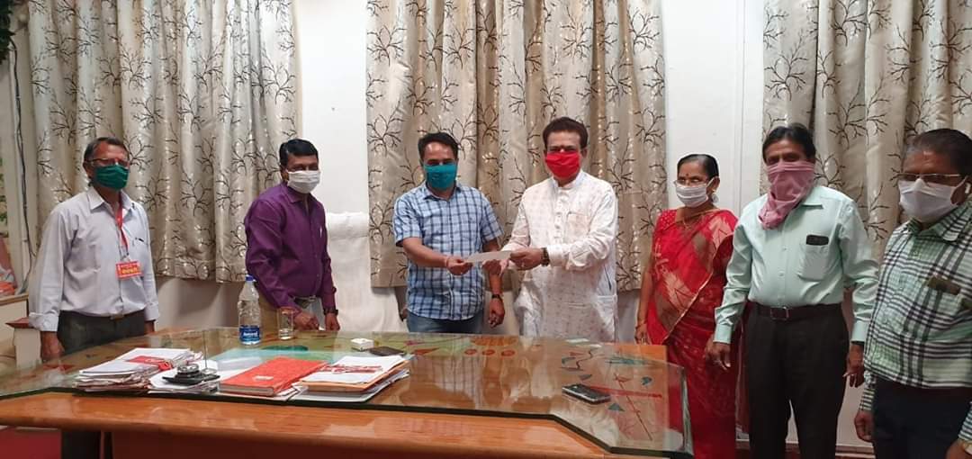 अमळनेर : येथील मंगळ ग्रह सेवा संस्थेचा कोणत्याही सामाजिक कार्यात सहभाग असतो. तीच सामाजिक बांधिलकी जपत संस्थेतर्फे कोरोना निर्मूलनासाठी मुख्यमंत्री सहाय्यता निधीस आज २१ हजार रुपये मदतीचा धनादेश देण्यात आला. मंगळ ग्रह सेवा संस्थेचे अध्यक्ष डिगंबर महाले यांनी पदाधिकाऱ्यांसोबत सोशल डिस्टन्सिंगचे पालन करत हा धनादेश तहसीलदार मिलिंद वाघ यांच्याकडे सुपूर्द केला. सर्वांनी आपापल्या चेहऱ्यावर मास्क लावले होते. यावेळी संस्थेचे उपाध्यक्ष एस. एन.पाटील, सचिव एस. बी. बाविस्कर, सहसचिव दिलीप बहिरम, विश्वस्त अनिल अहिरराव व सौ. जयश्री साबे उपस्थित होते.